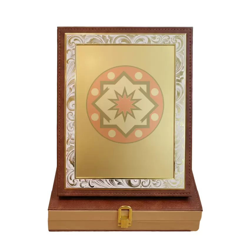 Elevate your awards ceremony with this sophisticated Gold-Plated Filigree Plaque. Housed in a rich, chocolate-brown leatherette frame with intricate perimeter stitching, this award exudes professional excellence and high-end quality.