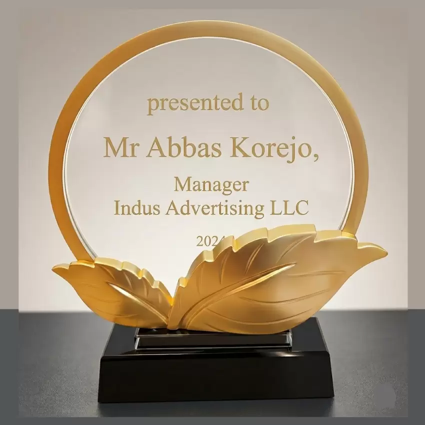 Elegant Golden Leaf Recognition Award 21x17cm