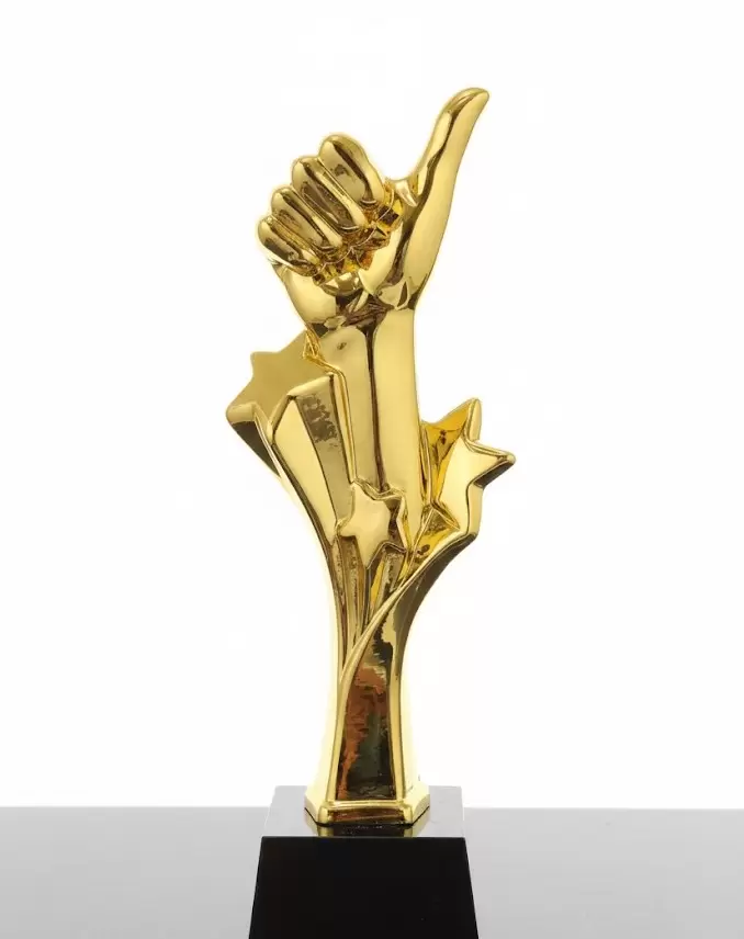Celebrate excellence and recognize outstanding performance with this premium Gold "Thumbs Up" Star Achievement Trophy. Designed to inspire and reward, this award is the perfect choice for corporate milestones, employee recognition, or special event honors.