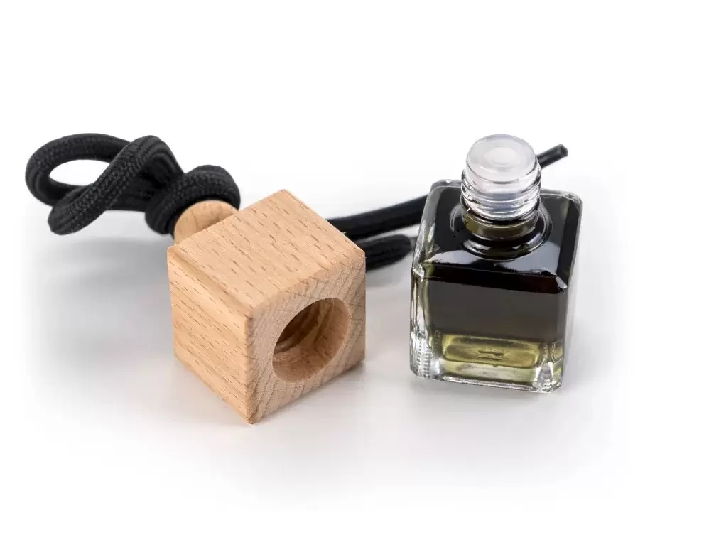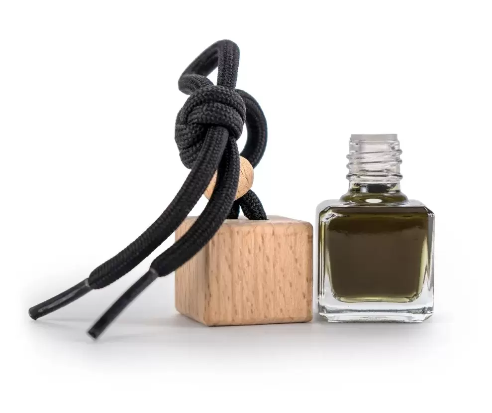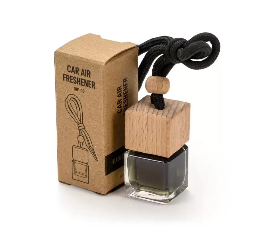 Hanging Car Diffuser Bottle with Bamboo Lid – Black Ice Fragrance