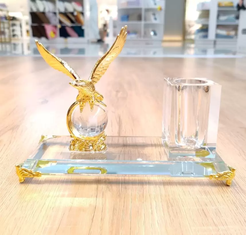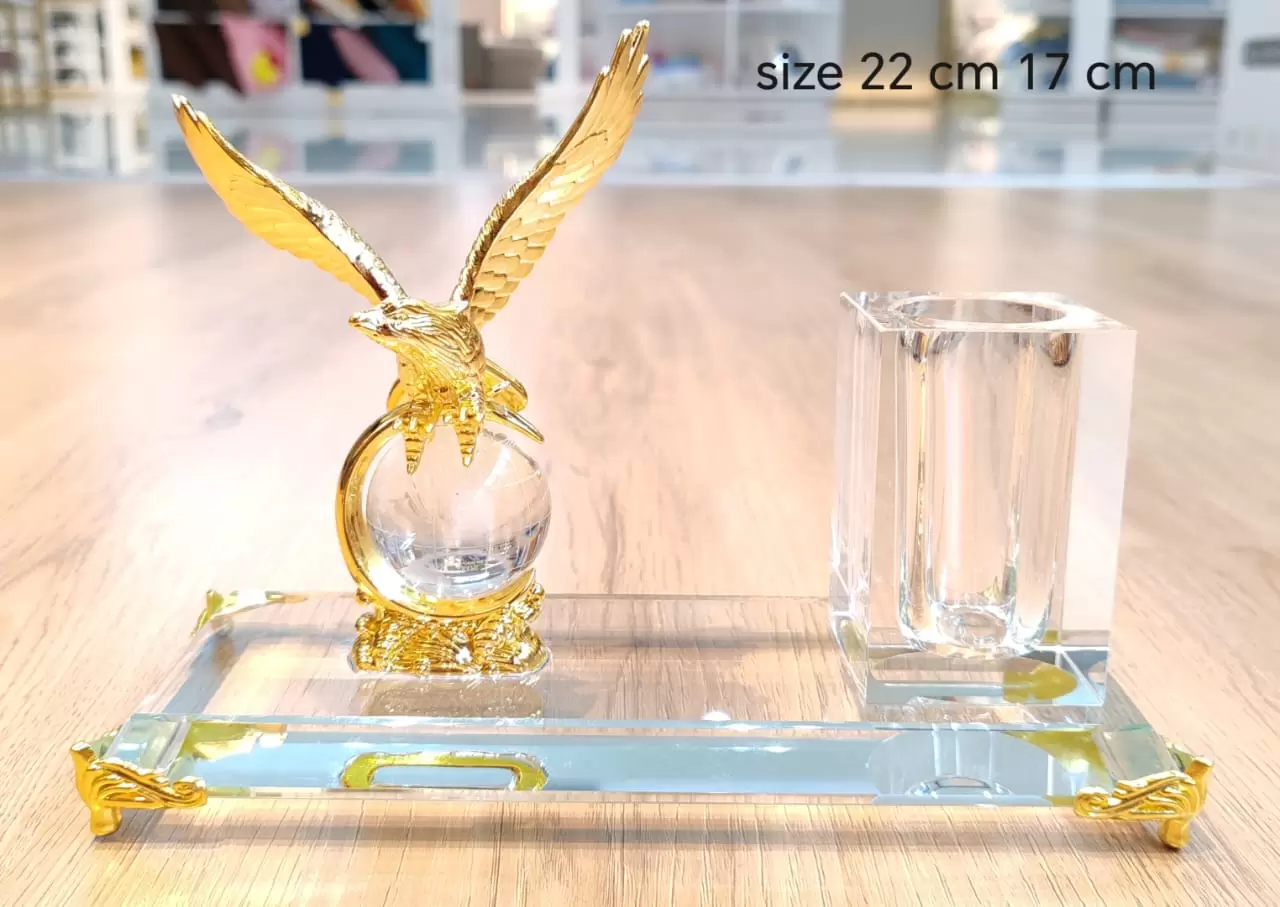 Add a touch of elegance and prestige to your workspace with this beautifully crafted Golden Eagle Crystal Desk Set. Designed to symbolize power, vision, and success, this premium set combines artistic craftsmanship with functional office essentials.