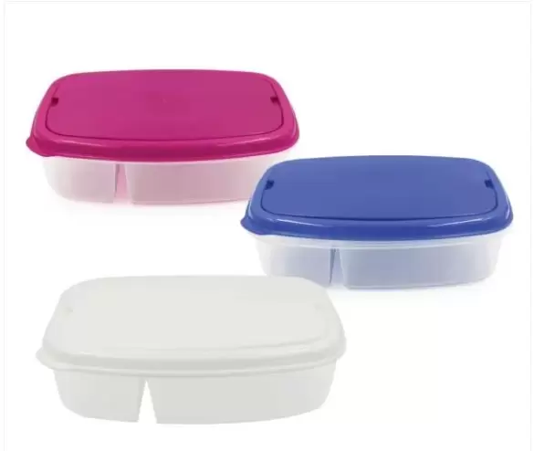 - Double lunch box with two compartments.