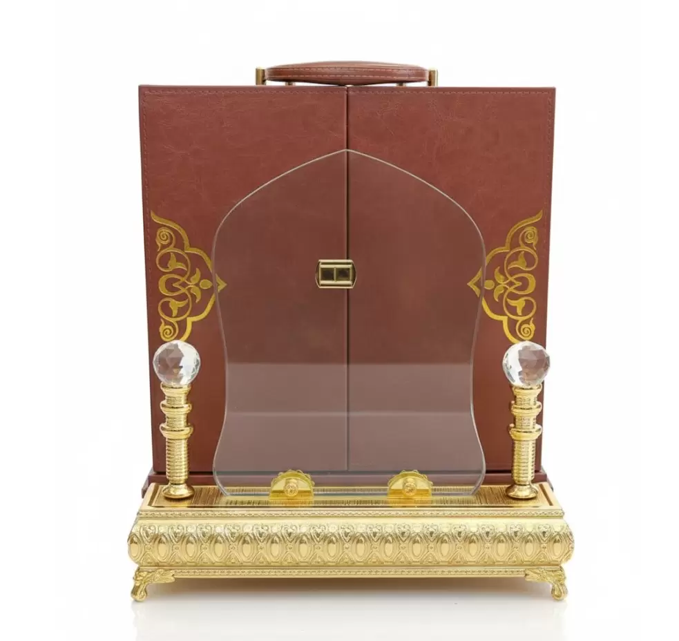 • Material: High-quality clear crystal glass Base: Heavy gold-finished ornamental base with decorative pillars