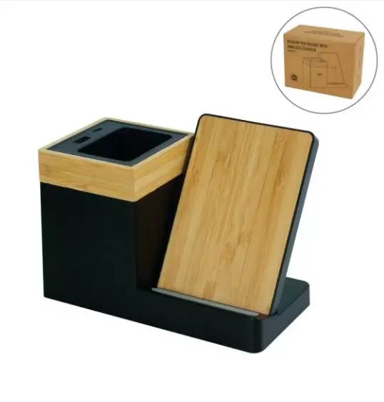 Bamboo Pen Holder with 15W Wireless Charger