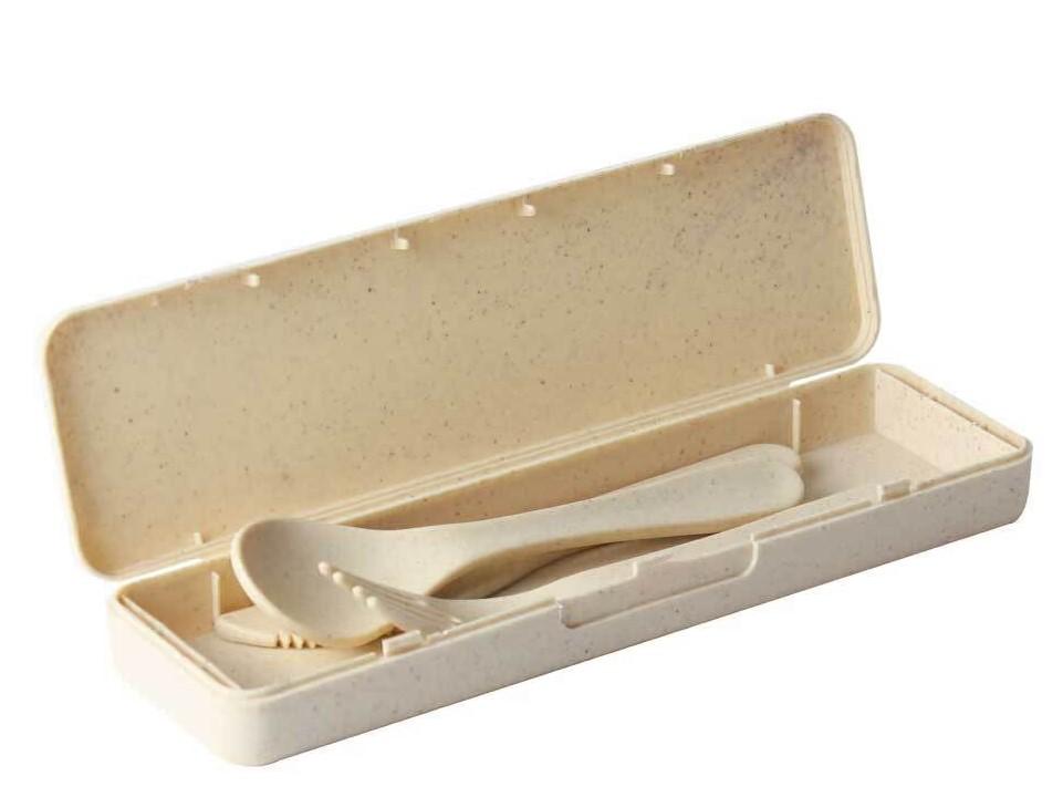 Includes Wheat Straw material Spoon, Fork, and Knife.