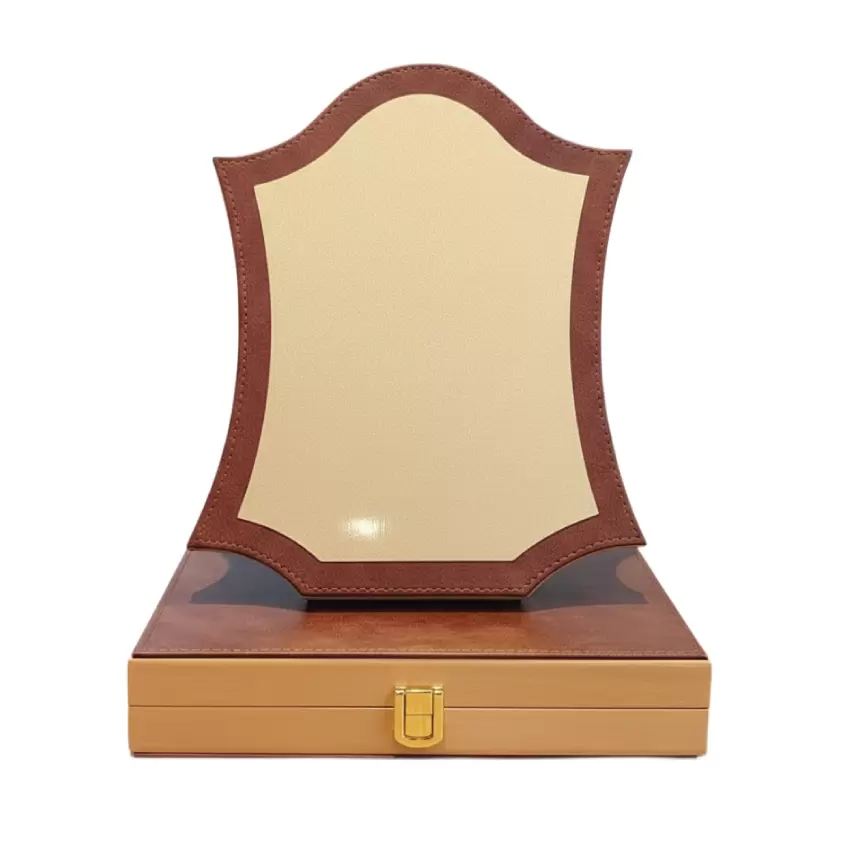 This distinguished plaque combines traditional honor with sophisticated craftsmanship, featuring a classic shield silhouette. Representing protection, strength, and victory, it serves as a premier choice for high-level government, military, or executive recognition. The award is presented alongside a matching premium display case, ensuring it remains a treasured heirloom for the recipient.