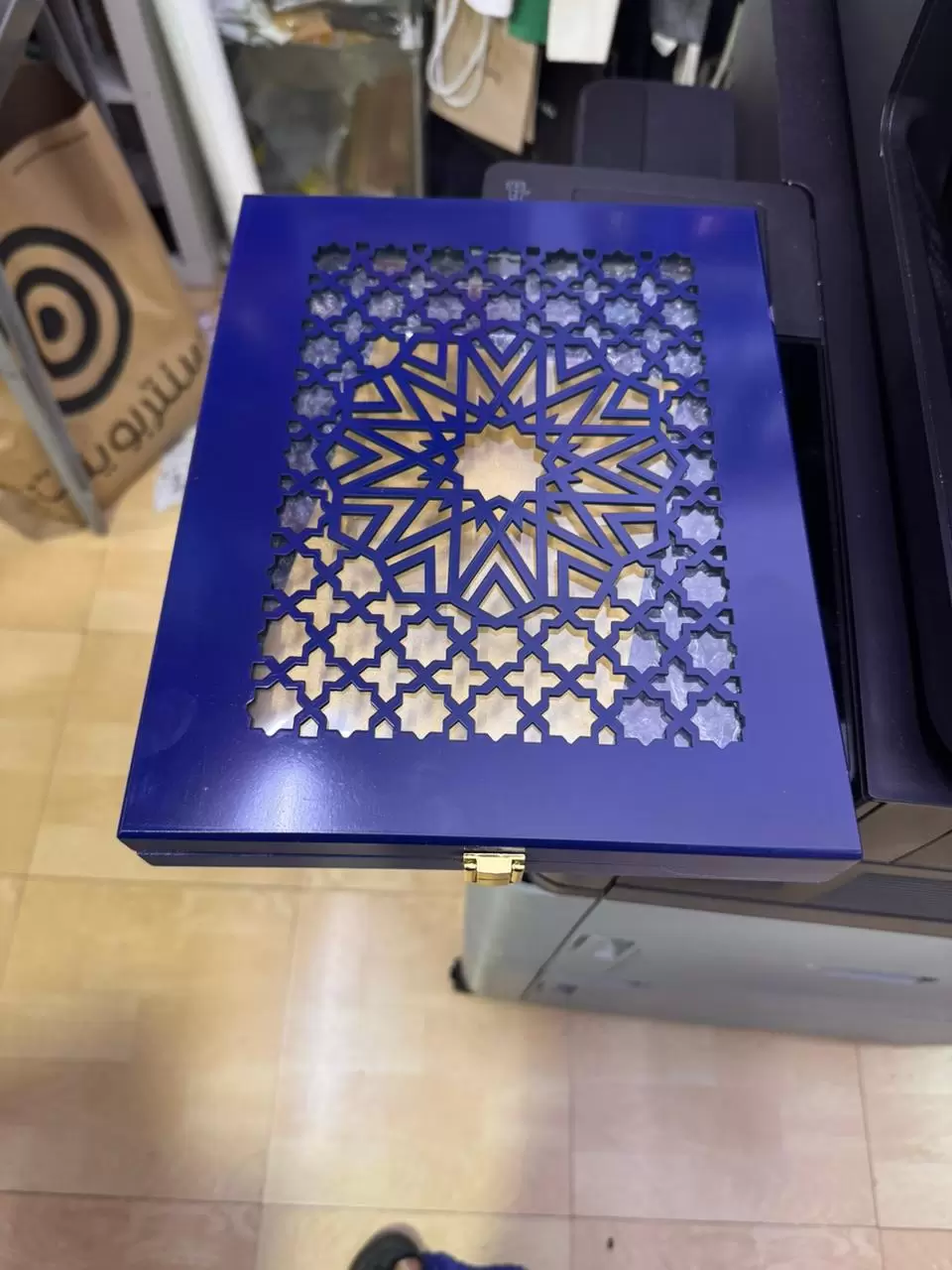 Luxury Hinged Box: Matching wooden presentation case with gold-tone clasp