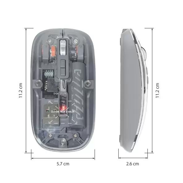Wireless Mouse Transparent Dual Mode 2.4G Bluetooth-Compatible Rechargeable Voltage: 3.7V | Current: 15mA | Charging Cable (Type-C)